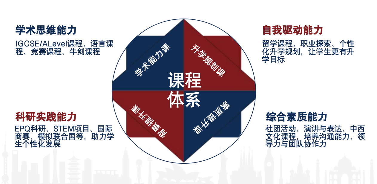 国际部结合自身传统优势,引入国内外的优质国际教育资源,打造了中西融合的特色A-Level课程,培养拥有全球化视野、批判性思维、创新创意能力的国际复合型人才。