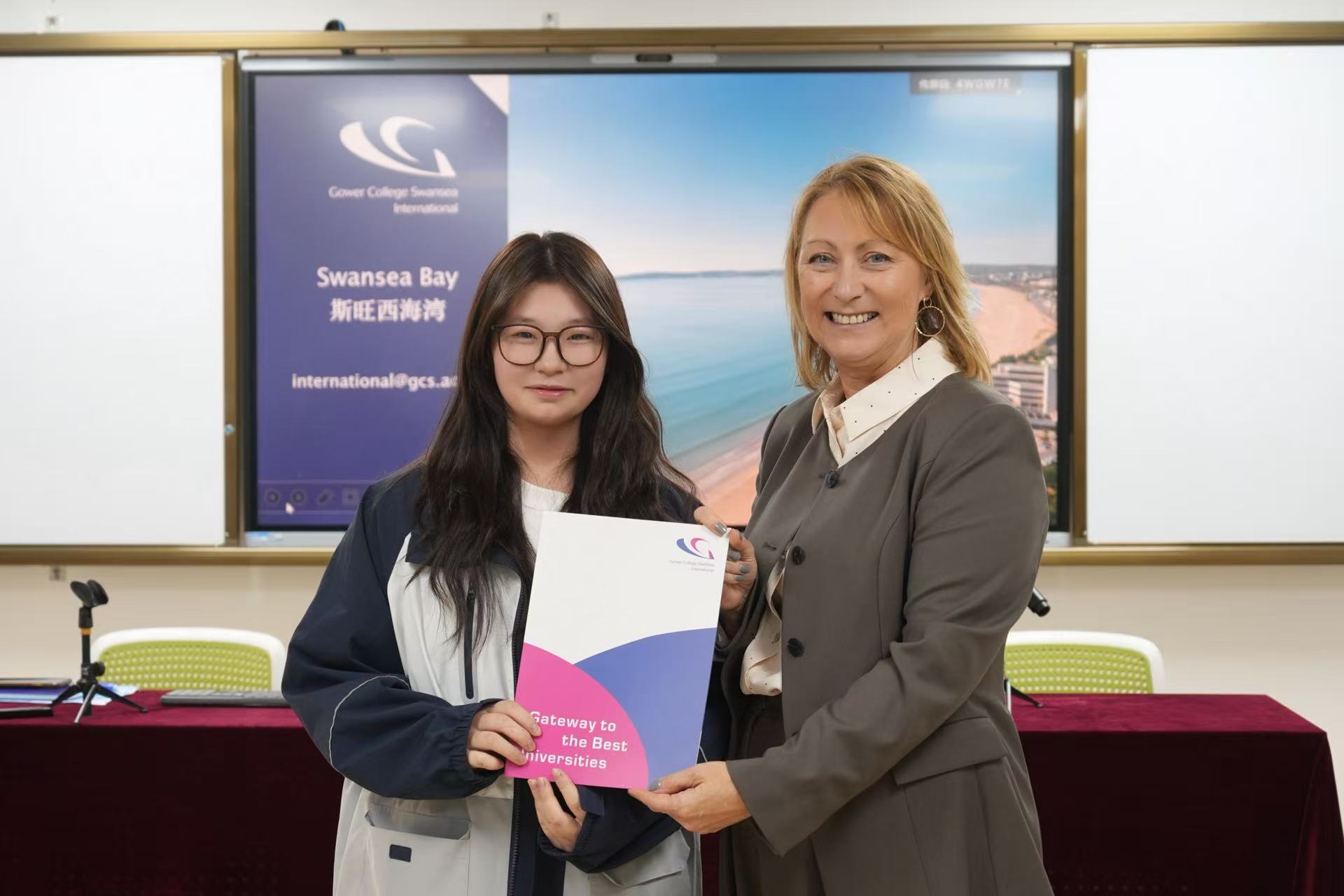 交流活动接近尾声,最后是英国高尔中学的学籍授予仪式,由Nikki Neale女士为A-Level学生颁发。她递出的不仅是一份荣誉认可,更是两校对学子们未来发展的殷切期许。同学们身着整齐校服,面带微笑接过证书,一一合影留念,将这份跨越国界的师生情谊、校际联结定格为永恒的美好记忆。