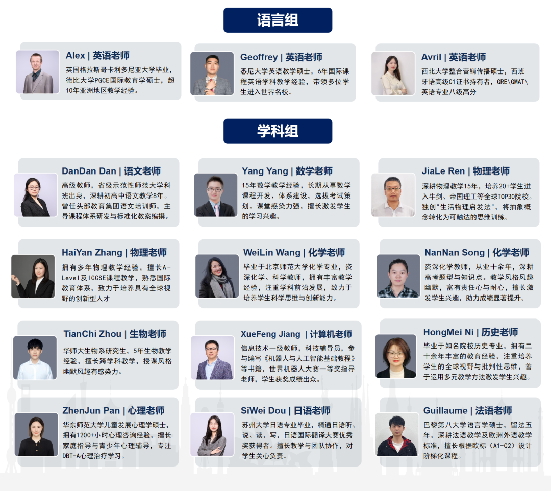 克勒欧亚班汇聚了一支国际化、专业化的师资团队,致力于为学生提供高质量的教育和个性化指导。欧亚班的课程由经验丰富的外籍教师与中国教师共同授课,确保学生在掌握扎实学术知识的同时,也能提升语言能力和跨文化交流能力。