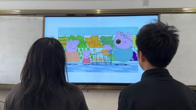 站在屏幕前,学生们化身《神偷奶爸》中的奶爸、《哪吒》里的石矶娘娘,或是《小猪佩奇》中的佩奇。他们不仅需要发音准确,更要模仿角色语气、情感起伏和节奏停顿。一段段精彩演绎赢得阵阵掌声,连评委老师们也赞赞叹连连。