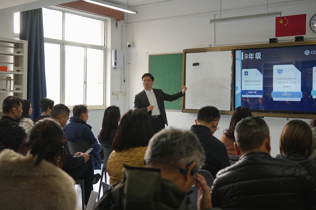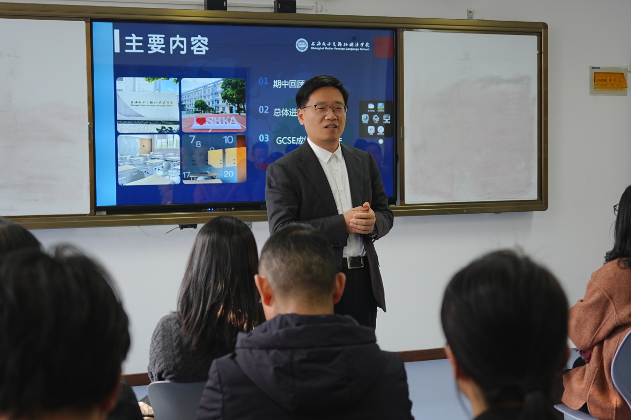 下午两点,家长会准时开始。首先由克勒国际部学术校长马建锋对本次期中考试进行了总结与复盘。他没有一味谈论分数,而是聚焦到成绩背后孩子努力的痕迹——哪些班级在课堂表现上有了进步、哪些同学在学习习惯上产生了蜕变,他都如数家珍。