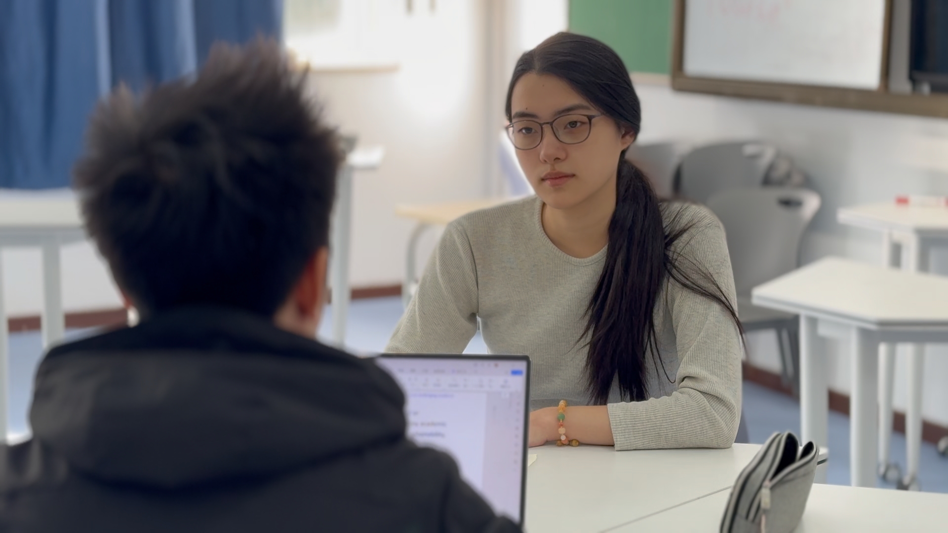 ↑ Kris老师给Lily做面试辅导。