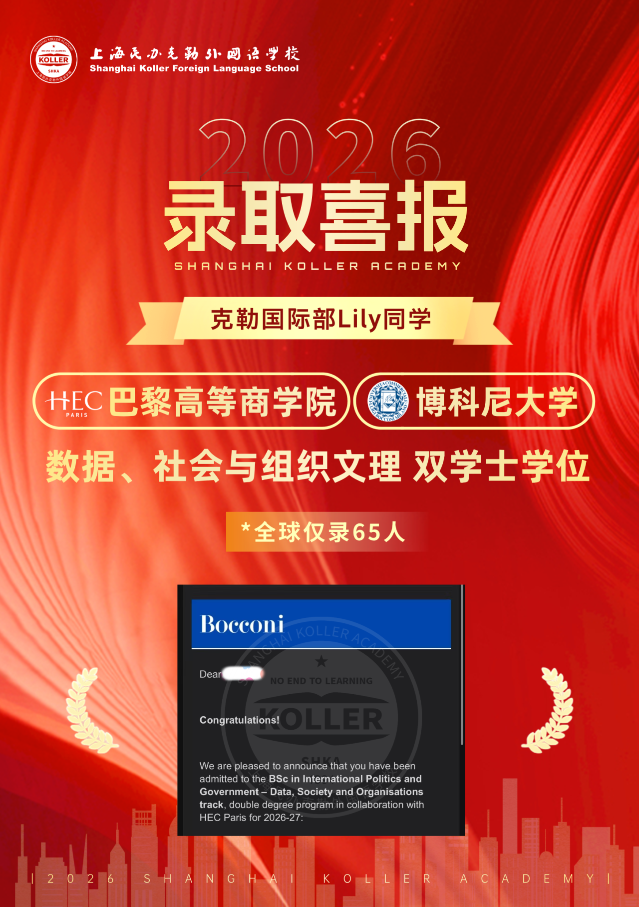 这个有着清晰的申请目标、在申请季披荆斩棘的女孩,如今手握这份沉甸甸的梦校Offer,目光坚定地奔赴属于自己的未来。那些在克勒的课堂中埋下的知识种子,那些与克勒师生并肩奋斗的时光,那些为了梦想熬夜刷题、反复打磨文书的日夜,都将化作她前行路上的底气。