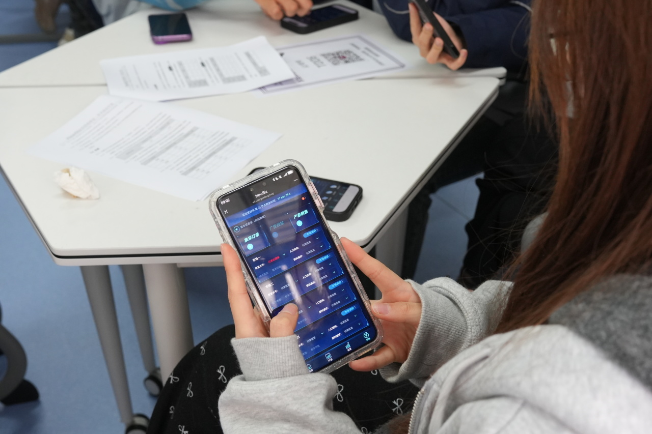 本届商赛通过手机端软件搭配AI算法完成交易、生产等各个操作,而熟悉这套操作系统成为了同学们要面对的第一个挑战。老师讲解过后,各小组迅速进入状态,在模拟的第0财年中仔细研究每个功能模块的用法。