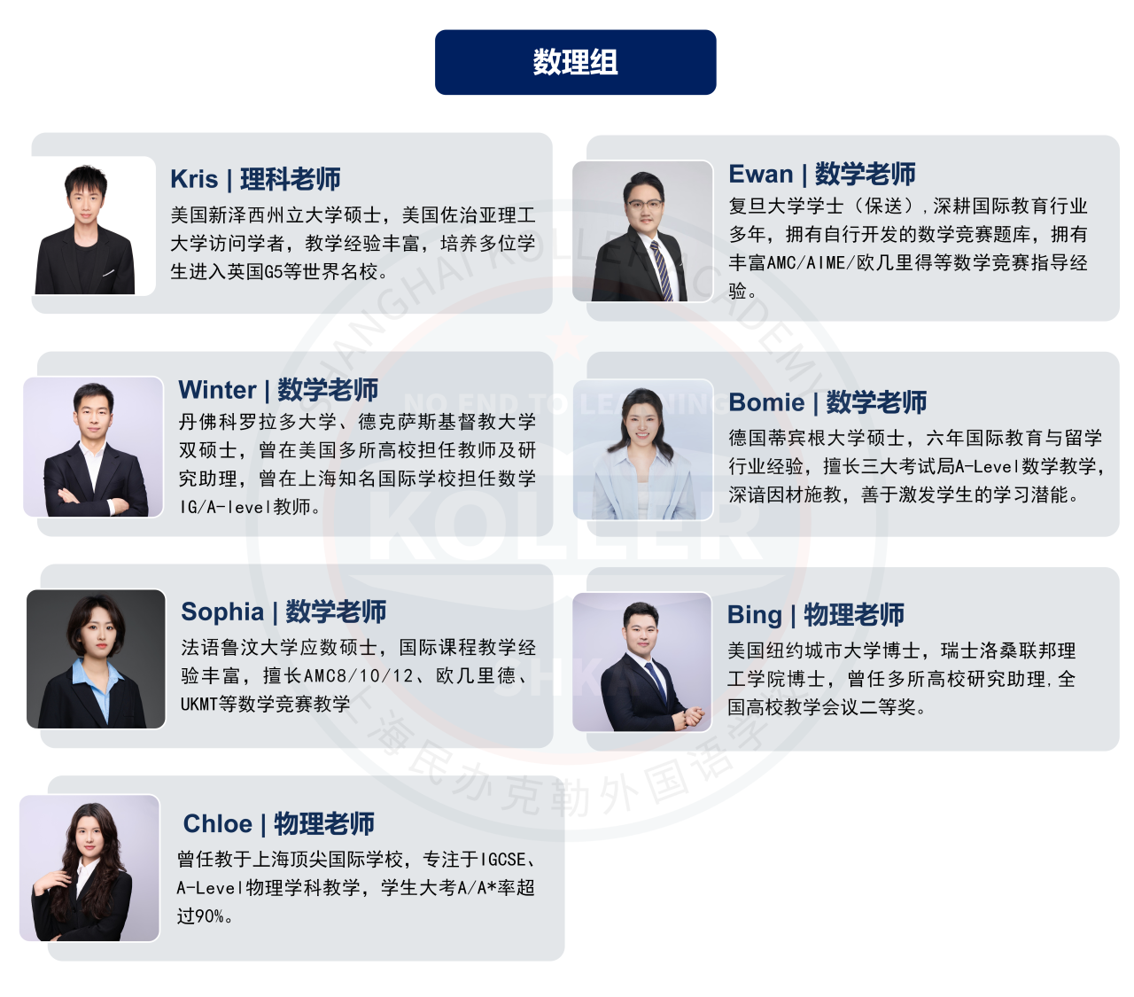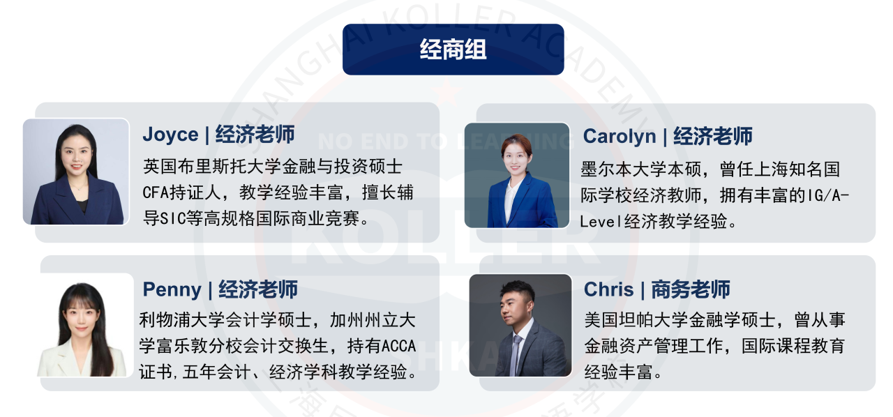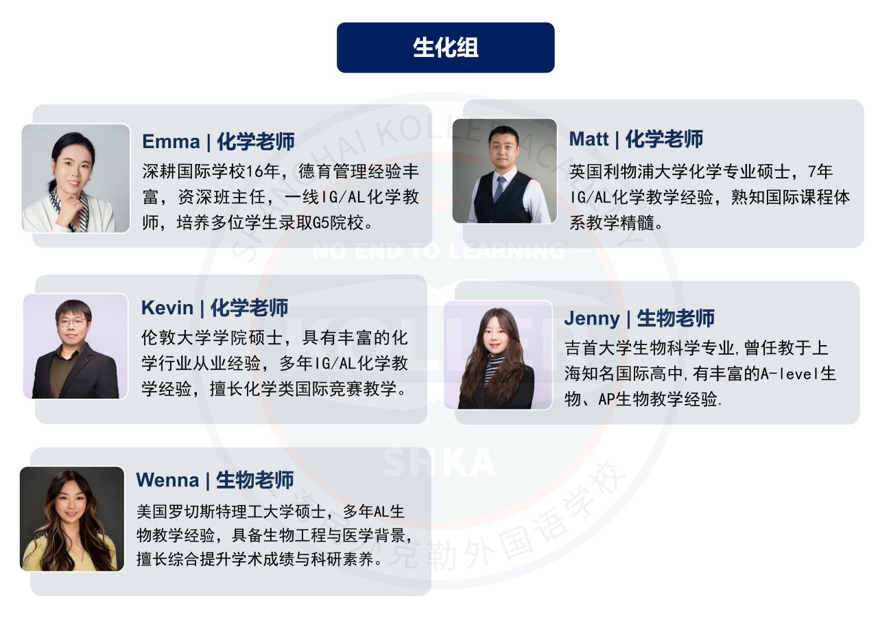 克勒国际部的A-Level教学团队由一群资深教师组成,骨干成员均为国内外名校硕士、博士毕业,有多年国际课程教学经验,培养了众多学生成功进入牛津大学、剑桥大学、伦敦政经、帝国理工学院、伦敦大学学院、曼彻斯特大学、香港大学等各个全球名校学习。