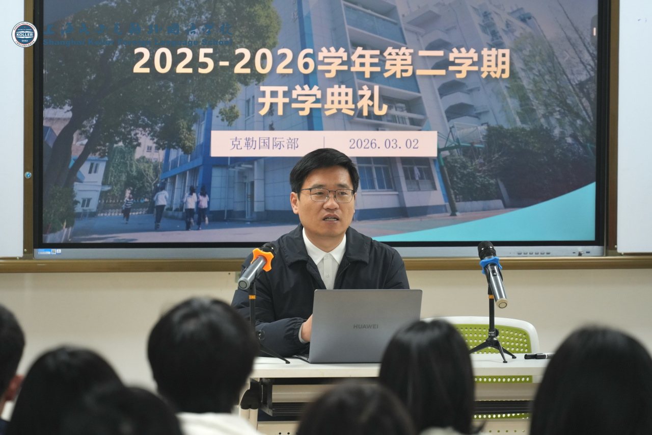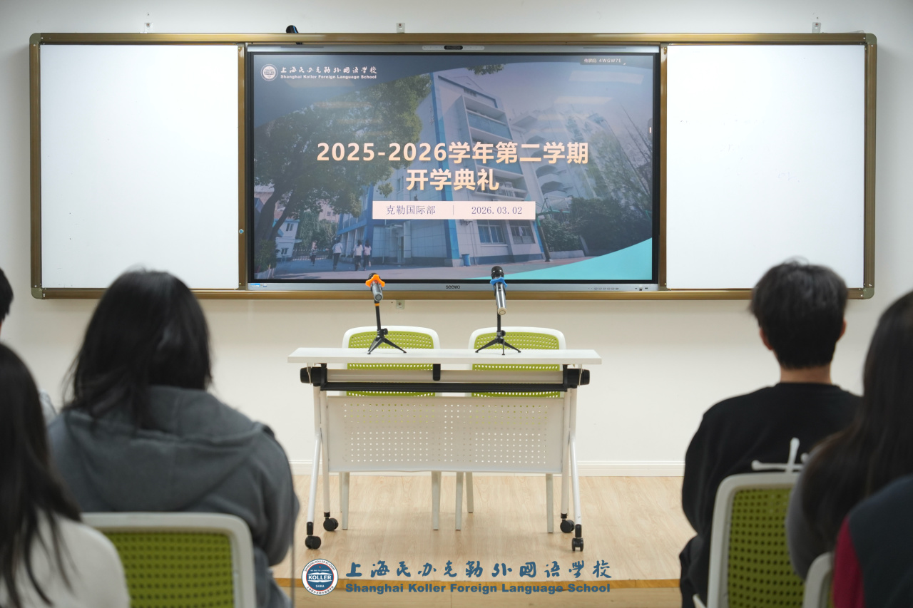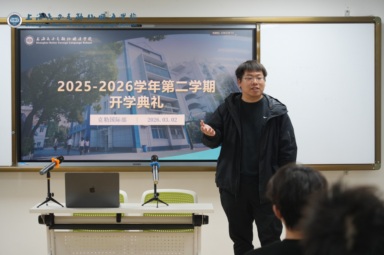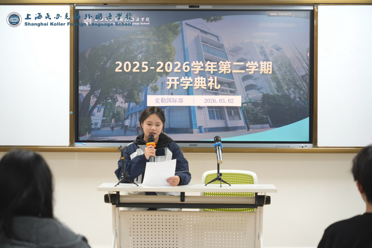 班会结束后,克勒国际部全体学生一同参加了本学期的开学典礼。克勒国际部优秀在读生沈同学担任主持并上台发言,她分享了自己的学习经历,同时也鼓励同学们多多尝试、尽快适应,以更加积极的姿态面对学习与生活。