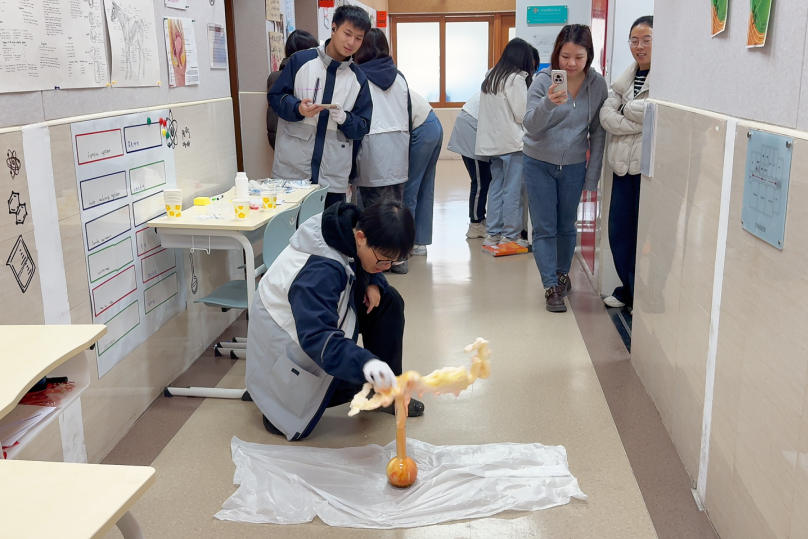 “大象牙膏”实验用一场视觉盛宴,让同学们感受到了化学变化的神奇力量。这个实验不仅让同学们直观观察到化学变化的现象,更帮助大家理解了催化剂的作用,激发了对化学学科的探索欲望,原来化学不仅存在于课本中,更藏在生活的每一个角落。