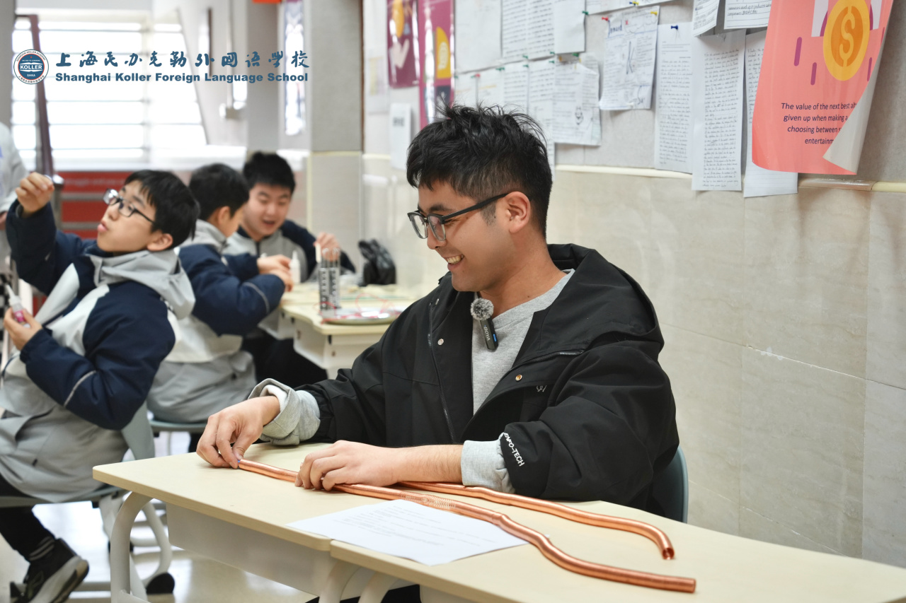 另一个实验更是让同学们眼前一亮,大家亲眼见证了电池与磁铁组合体放入铜线圈后,无需外力就能自动前进的神奇现。这一过程完美展现了电与磁的相互转化,让抽象的电磁感应原理变得直观可感。同学们纷纷动手尝试,在探索中收获知识与乐趣。