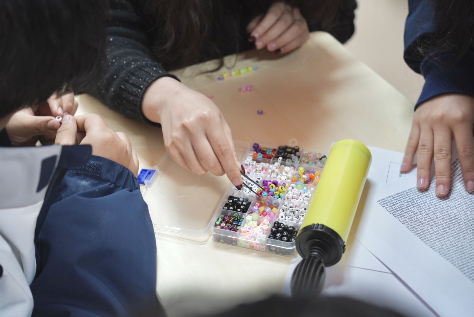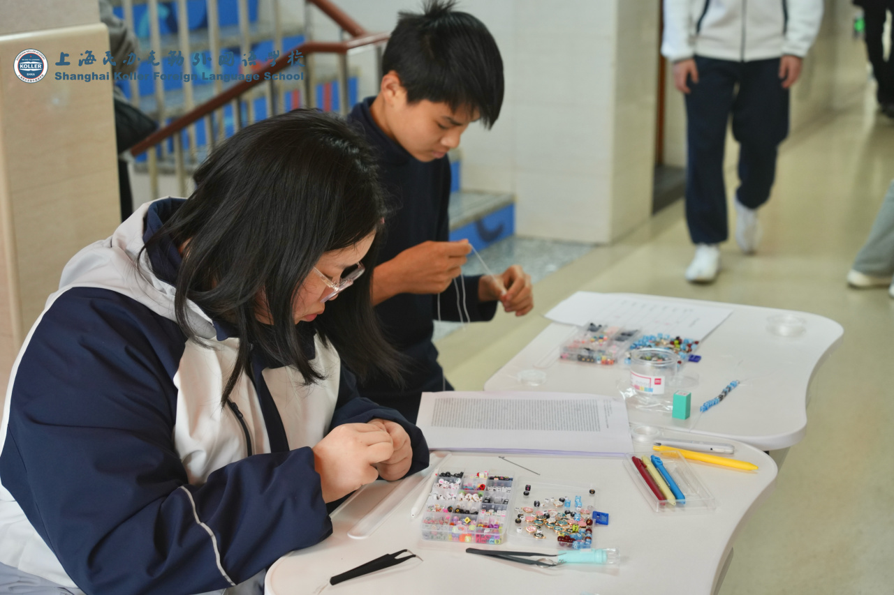 π的数字串珠将π的无限小数与手工创作相结合,同学们根据π的数值顺序,挑选对应数字的串珠,亲手串制专属串饰,在穿针引线间,记住π的每一位数字,让抽象的无理数变得鲜活可触、温润有趣。
