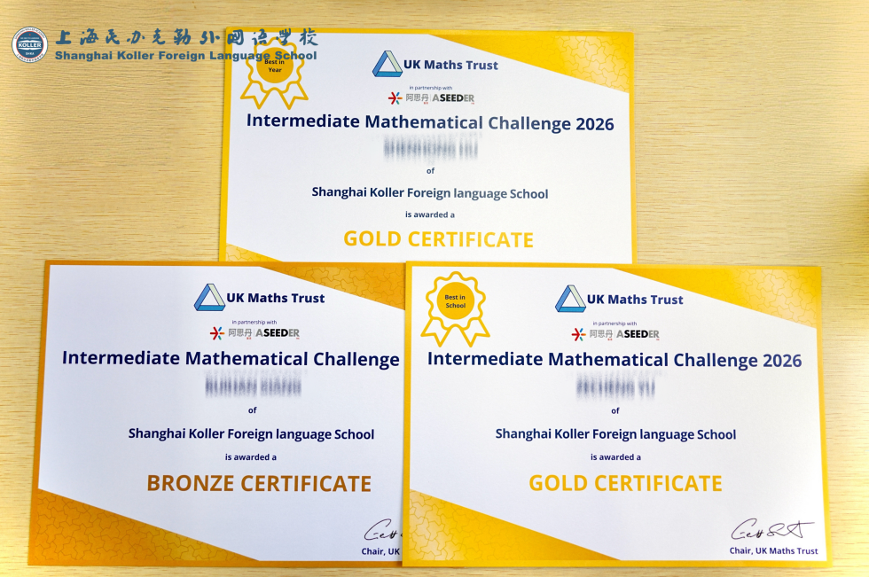 竞赛方面,克勒学子也斩获佳绩。在IMC英国中级数学挑战赛中,三位学生在竞赛中表现突出,获得了2枚金奖、1枚铜奖的佳绩,用实力诠释了努力与热爱的力量,为校园增添了荣誉光彩,彰显了克勒国际部学子的学术潜力与综合素养。