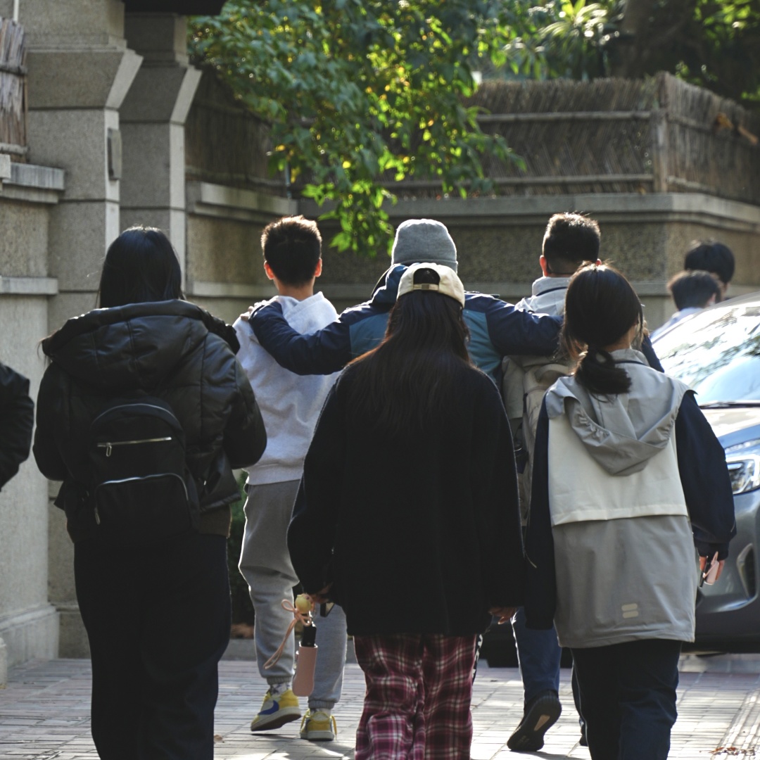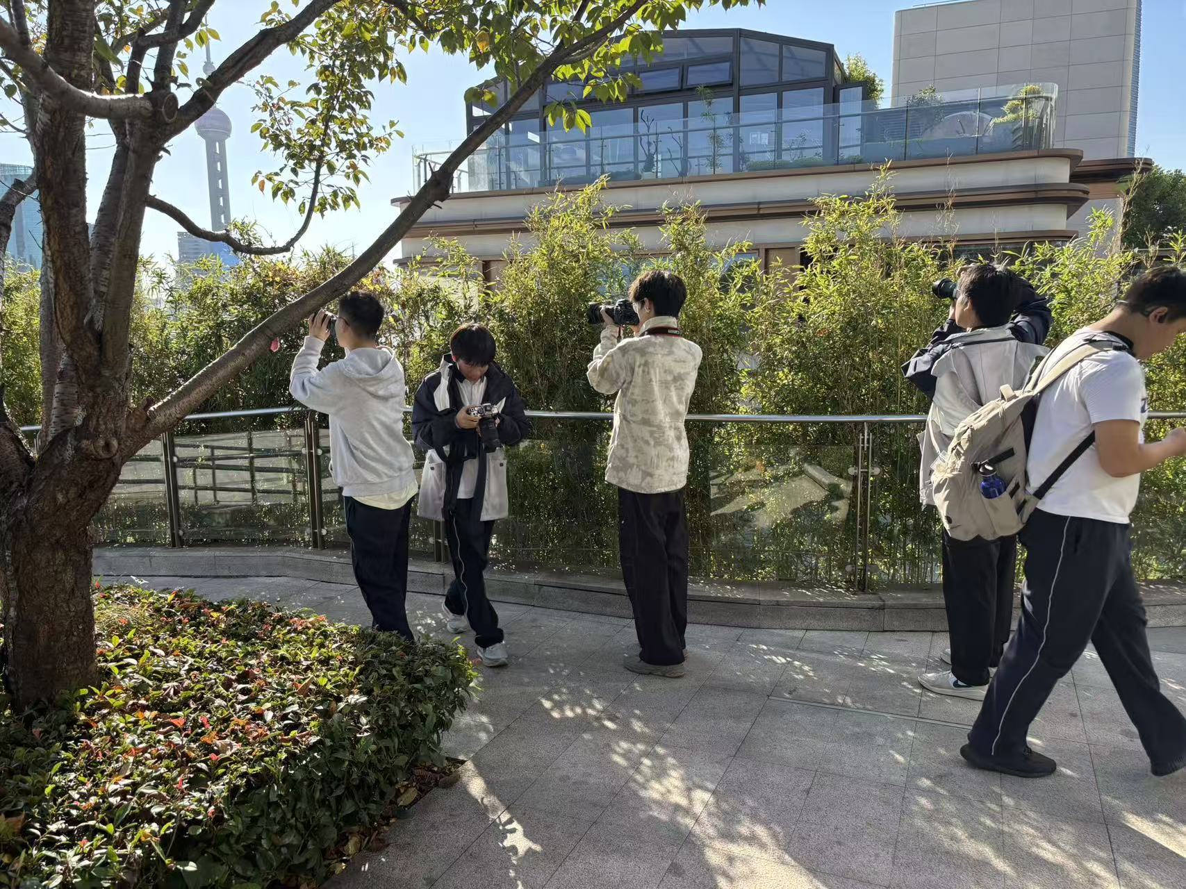 让我惊喜的是,同学们在拍摄之余,还会主动设计构图,路过的飞鸟、掉落的树叶、街角的风景,都成为他们镜头下独一无二的主角。四个小时的时光转瞬即逝,我们从北外滩走到外滩,孩子们全程投入,沉浸在光影的美好之中。