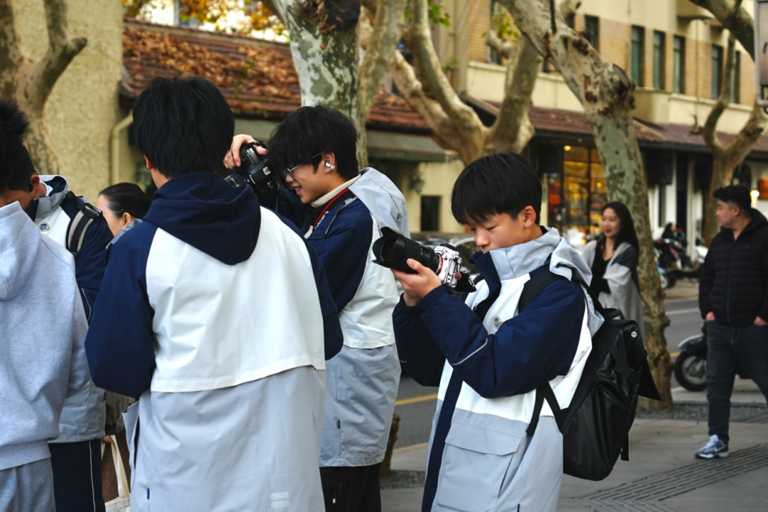 同学们放慢脚步,感受着历史与现代的完美交融,快门声此起彼伏,将武康大楼的典雅、淮海路的烟火,都定格成了永恒的美好。